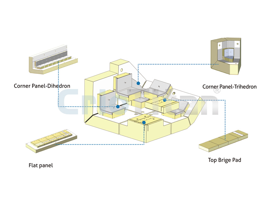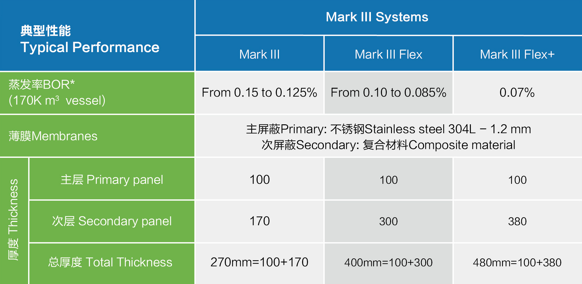Mark lI薄膜系統(tǒng)是一種由船體結(jié)構(gòu)直接支撐的絕緣結(jié)構(gòu)設(shè)計(jì),它由一個(gè)位于預(yù)制絕緣板頂部的主級(jí)波紋不銹鋼膜,和一個(gè)由復(fù)合材料制成的完整次級(jí)屏蔽膜組成。其主要的絕緣材料采用模塊化的預(yù)制組件,可以適應(yīng)任何形狀和容量的儲(chǔ)罐。組件主要有平面板、角落板、頂橋板等。